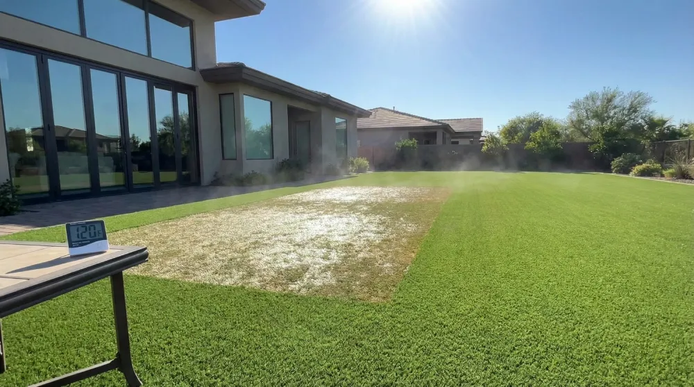 You install artificial grass expecting a low-maintenance, always-green lawn. Then summer hits.
